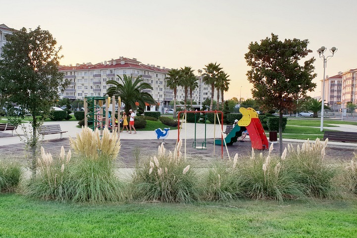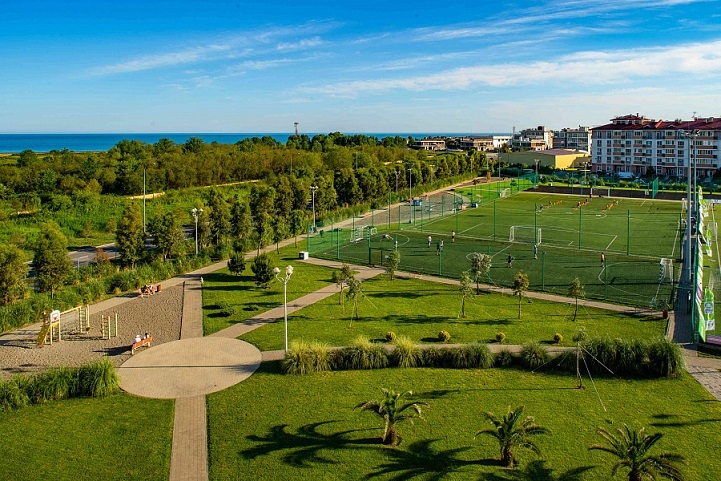 Уличные тренажеры, подогреваемый открытый бассейн (платно), бадминтон, спидминтон, баскетбол, волейбол, сапсерфинг.