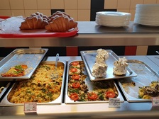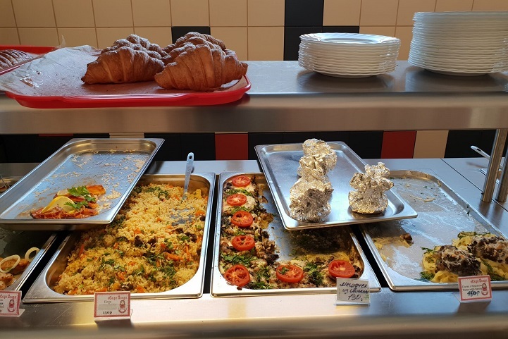 У нас 3-х разовое питание (шведский стол) + полдник. Каждый день мы едим фрукты и свежую выпечку, мясо, овощи, зелень. На территории расположены кафе-кондитерская, снек-бар, продуктовые магазины.