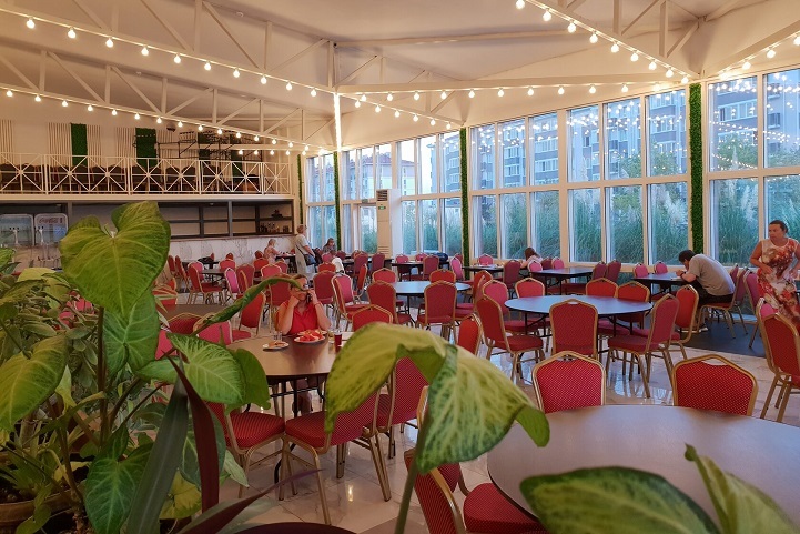 У нас 3-х разовое питание (шведский стол) + полдник. Каждый день мы едим фрукты и свежую выпечку, мясо, овощи, зелень. На территории расположены кафе-кондитерская, снек-бар, продуктовые магазины.