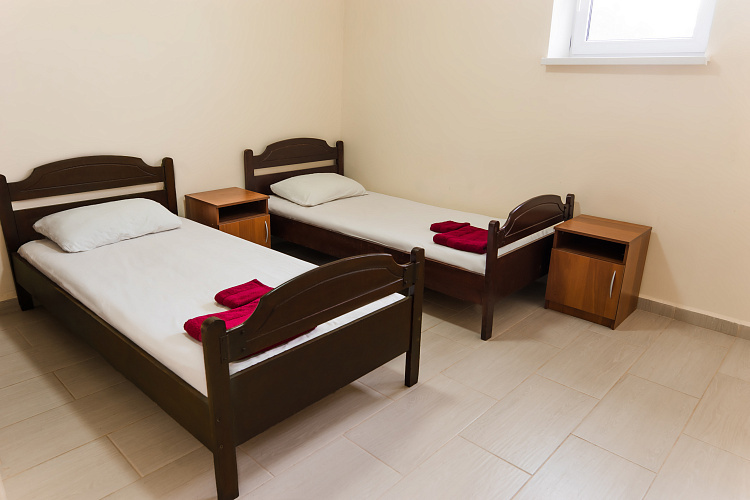 В корпусе "Ледокол" - проживание в комнатах по 6 человек, санузел с душем в каждой комнате. В каждой комнате установлены кондиционеры.