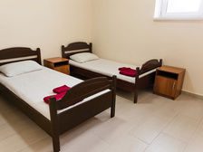 В 2-х этажных корпусах «Бригантина», «Каравелла» и «Фрегат» дети проживают в 4-х местных комнатах с балконом. Санузел с душем в блоке на 4 комнаты. Кондиционеры установлены в холлах.