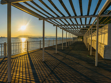Лагерь расположен на первой береговой линии. Есть свой пляж-солярий, оборудованный деревянным настилом, теневым навесом, удобными спусками в воду, раздевалками, средствами спасения на воде. Во время морских купаний на пляже-солярии постоянно дежурят матросы-спасатели и медицинский работник. Купание детей в огороженной буйками зоне.